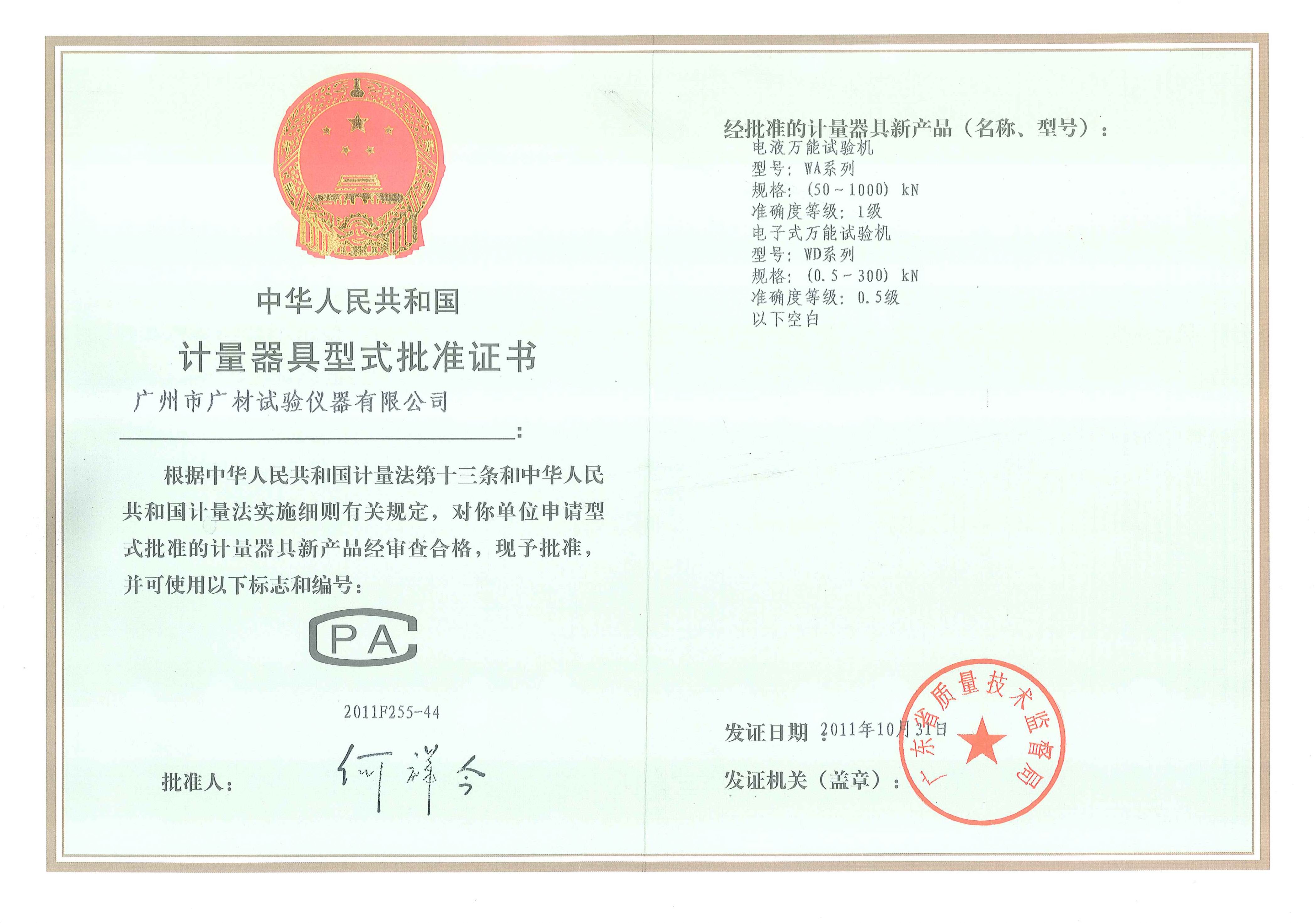 首頁 > 關(guān)于廣材 > 廣材試驗(yàn)機(jī)制造計(jì)量許可證 >